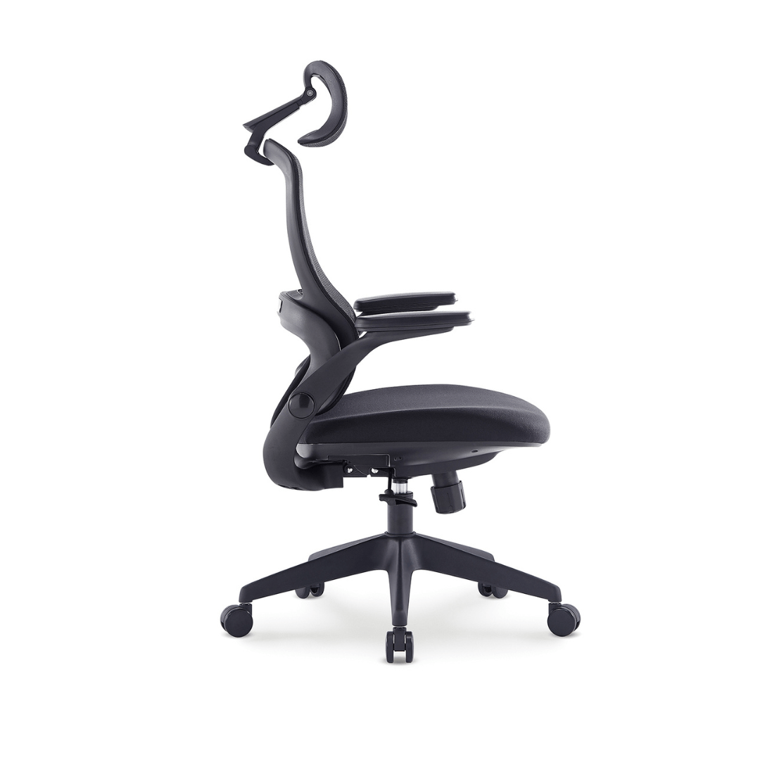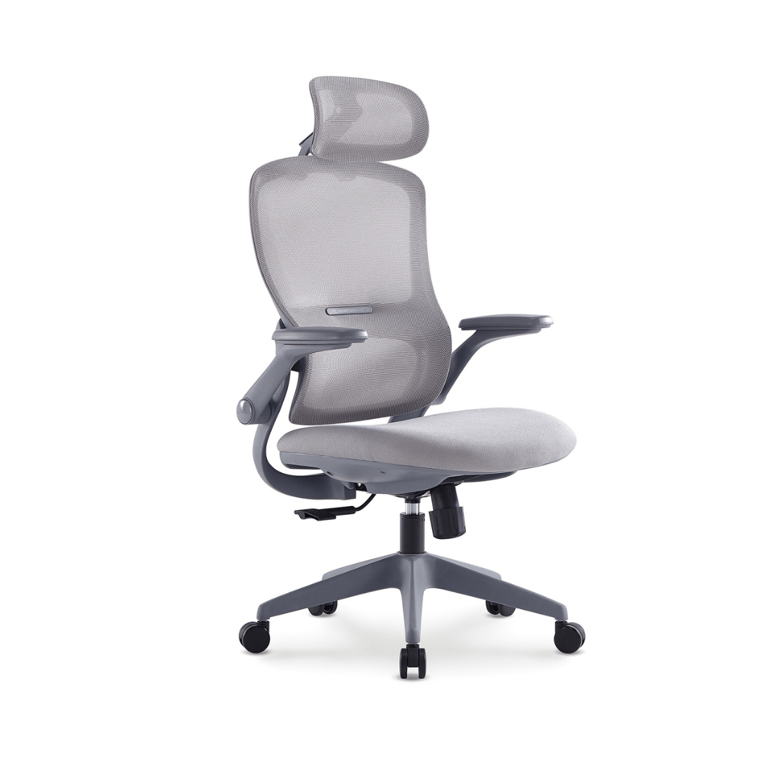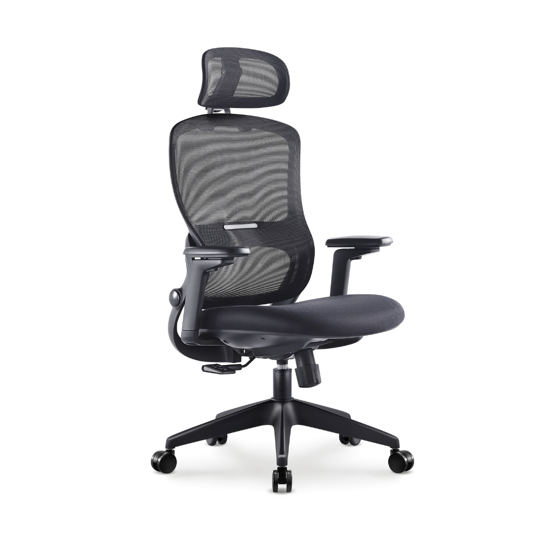 ריפוד בד איכותי, משענת ראש מתכווננת לתמיכה מלאה בצוואר, מנגנון סינכרוני ומושב החלקה להתאמה אישית מושלמת.