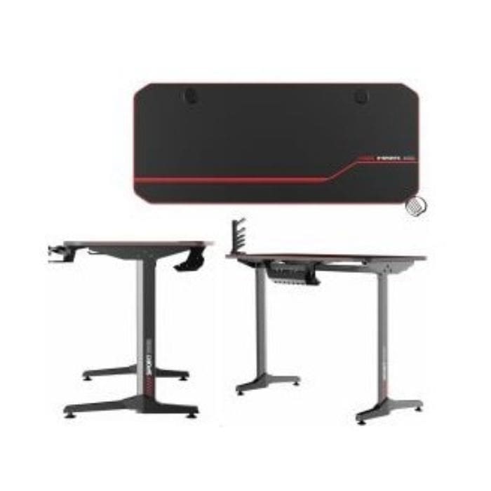 השולחן מציע משטח עבודה רחב במיוחד בגודל 140X64 ס"מ, רגלי מתכת מחוזקות ליציבות מלאה ותאורת RGB משני הצדדים ליצירת אווירה עוצמתית בזמן משחק.