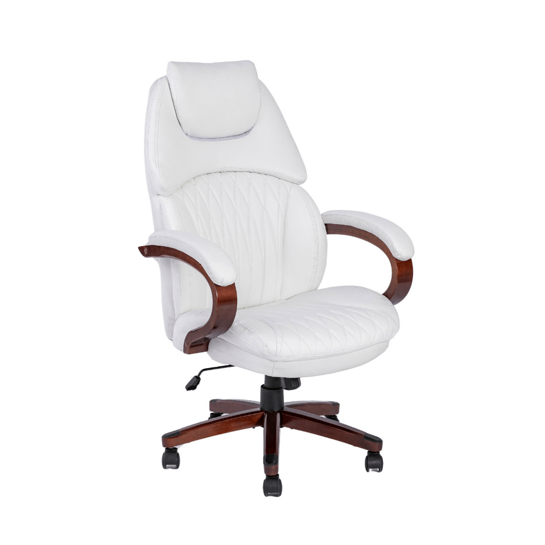 כסא מנהלים דגם ורטיגו מגיע בצבעים לבן או שחור, עם ריפוד דמוי עור יוקרתי שמתאים לכל סגנון עיצובי – קלאסי או מודרני.