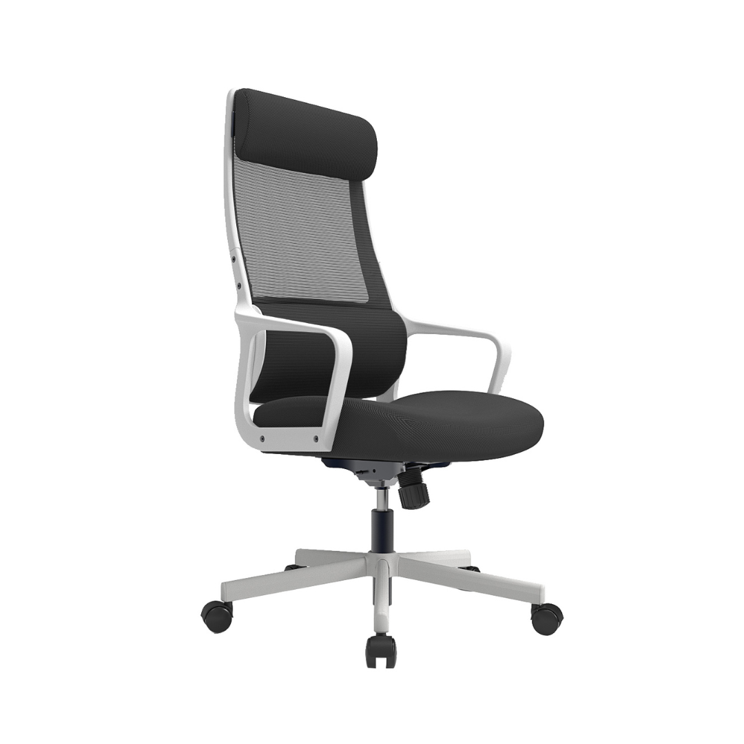 כסא מנהלים פביו גבוה עם ידיות קבועות מספק תמיכה מעולה לגב העליון והתחתון, תוך שמירה על יציבה נכונה.
