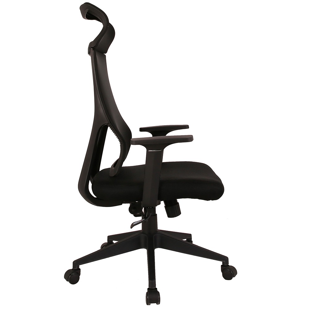 כסא מנהלים דגם מאורו בעיצוב מודרני עם גב רשת נושם ומושב מרופד בבד איכותי.
