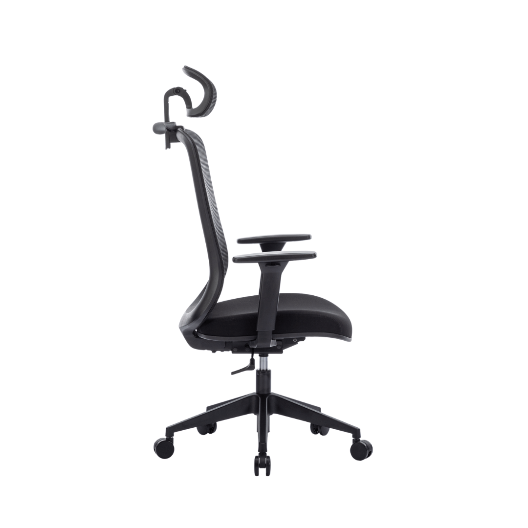 השילוב בין ריפוד בד שחור לגב רשת אלסטי יוצר מראה מודרני וקליל המתאים לכל סגנון משרד.